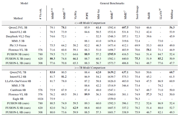 본 논문은 early fusion 방식의 멀티모달 모델인 FUSION을 제안하였다. 이 모델은 텍스트의 중요성을 고려하여 vision encoder에 텍스트 정보를 함께 입력하며, decoding 시에도 시각 정보를 반복적으로 제공함으로써 정보의 일관성과 정렬 품질을 극대화한다.