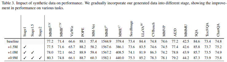 본 논문은 text의 중요성을 강조하여 caption → image → QA 순서로 데이터를 구성한다: