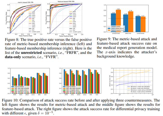 의료 도메인인 R2GenCMN 모델을 대상으로 공격 실험을 수행한 결과, feature-based attack은 82%의 성공률을 기록하며, 실제 환경에서의 민감 정보에 대해서도 위협이 됨을 입증했다.