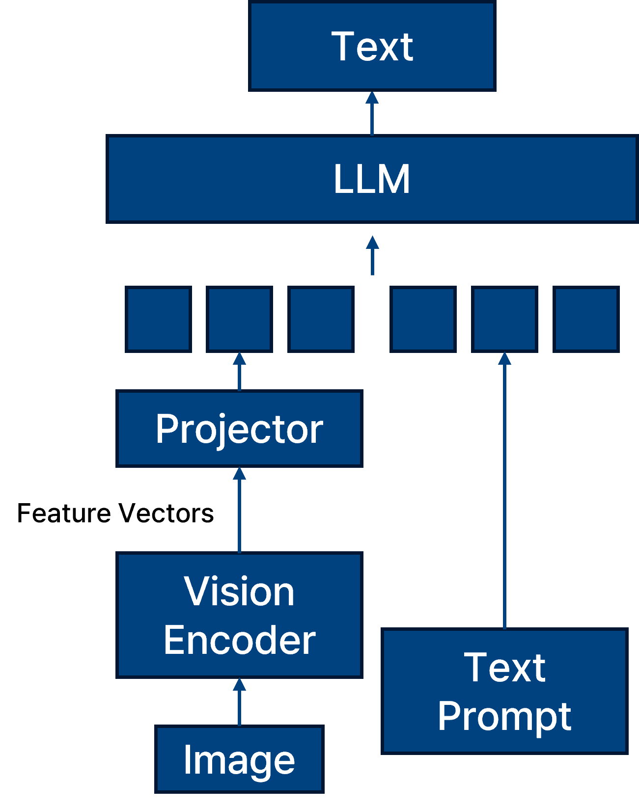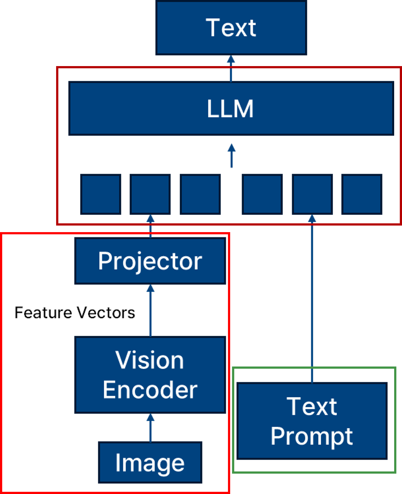 VLM은 Vision-Language Model로, vision encoder와 text prompt를 결합하여 LLM 모델에 입력하는 멀티모달 구조를 가진다.