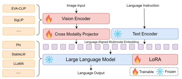 2024년에 발표된 nanoLLava nanoLLava는 LLaVA의 경량화된 버전으로, 모델 크기가 1B이하이며 모바일 장치나 경량 서버에서 실행 가능하다. 모델의 구조는 LLaVA의 구조를 계승했다.