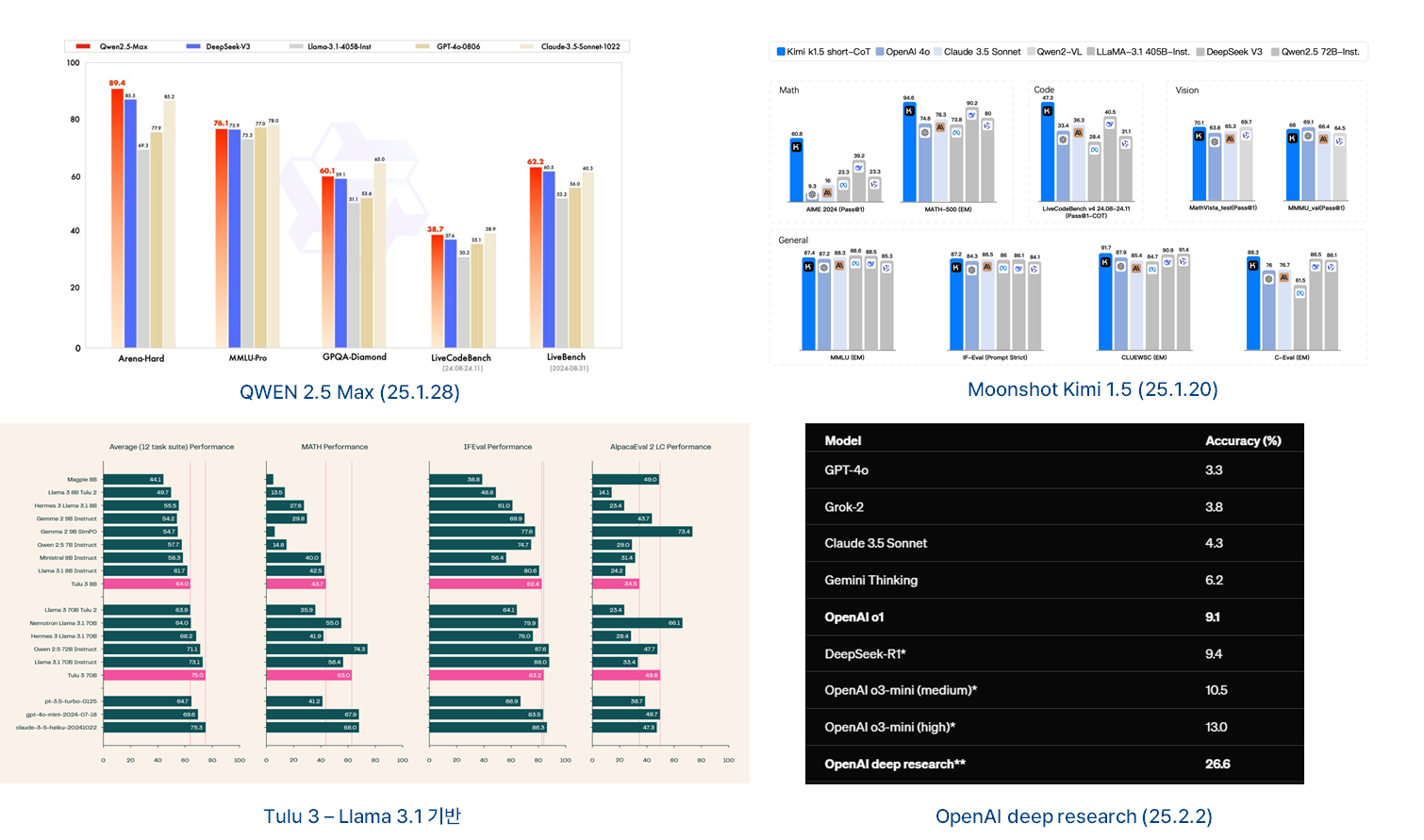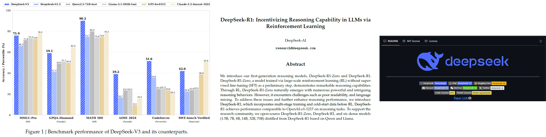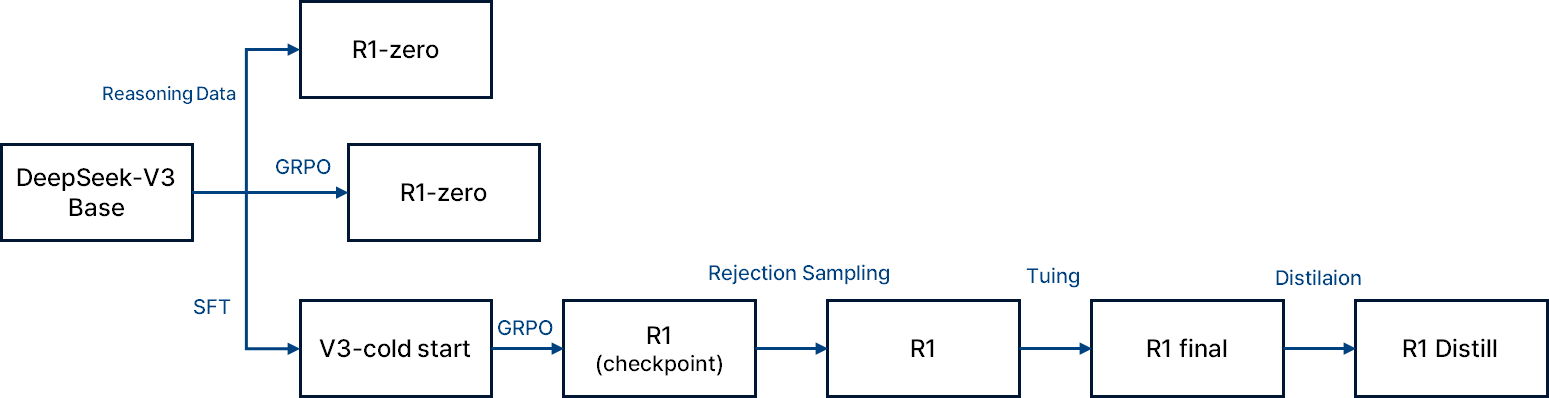 이후 발표된 DeepSeek-R1은 V3 모델을 기반으로하되 강화학습 기법을 적용하여 추론(Reasoning) 능력을 극대화 하였다.