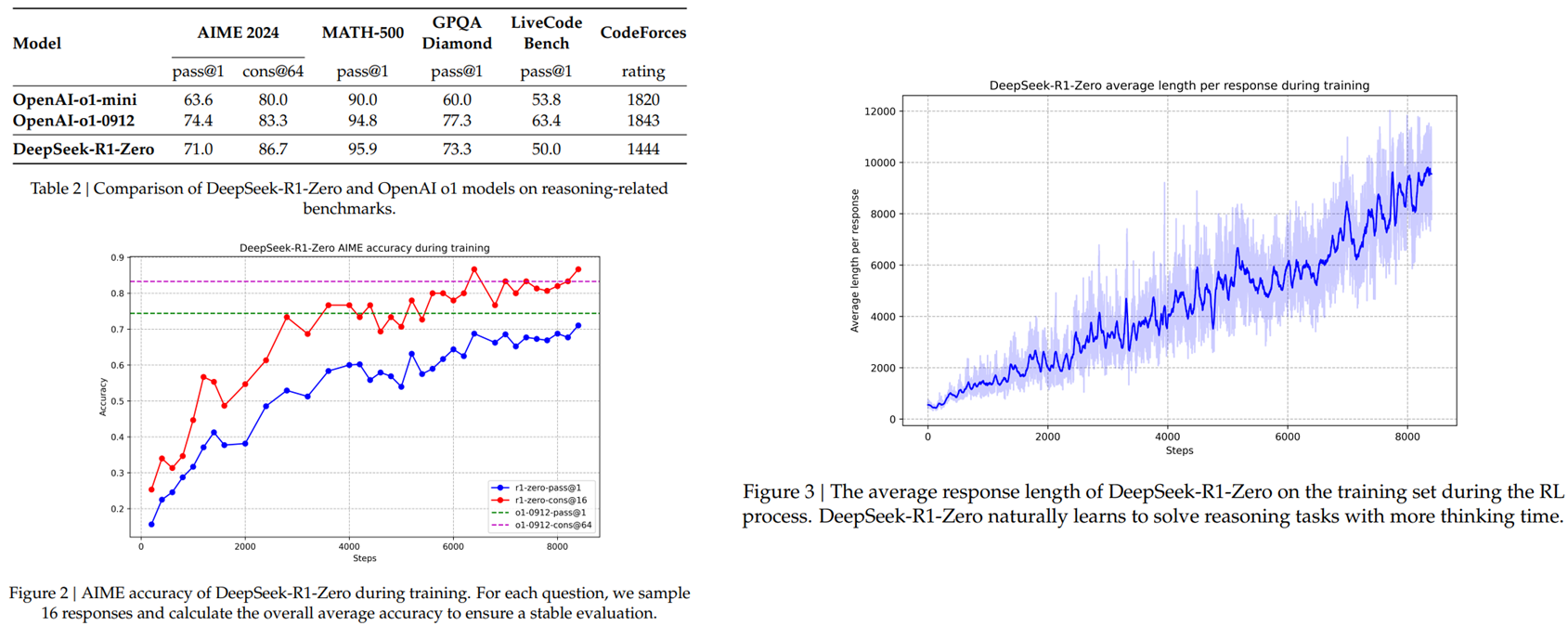 DeepSeek-R1-Zero는 reasoning 성능을 극대화하기 위해 Group Relative Policy Optimization(GRPO) 기법을 채택하였다. GRPO는 기존의 Value Function 없이, 그룹 간 상대적 성능을 비교해 reward를 계산하는 방식으로 학습 효율성과 안정성을 높였다.