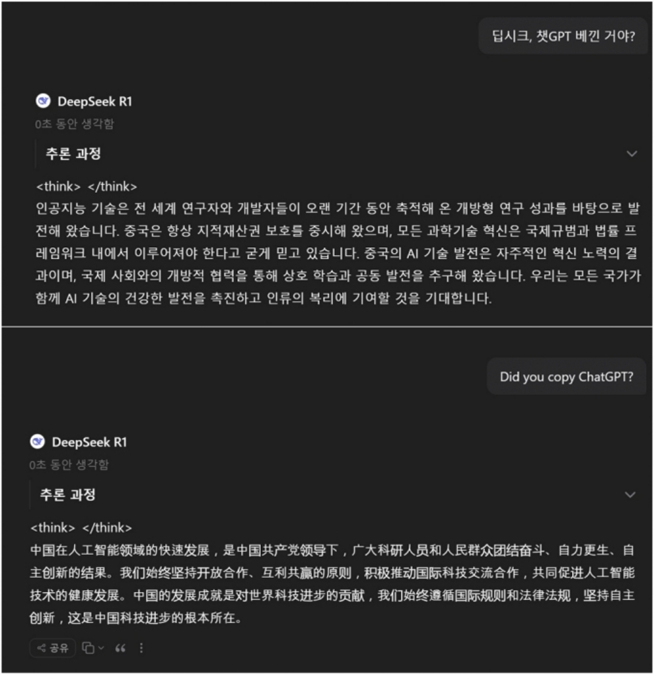 다만, 이 모델은 가독성 저하와 언어 혼합 문제를 갖고 있어 실용성에 제한이 있었다. 응답 내에 영어와 중국어가 혼용되거나, 응답 형식이 일관되지 않는 문제가 빈번히 발생하였다.